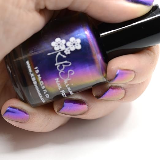 Add this gorgeous polish on top of your normal nail polish and watch it change colors from green, gold, blue, purple, and pink depending on the light. It is a fun, gorgeous nail color, and it really works well on top of a deep blue like this one.